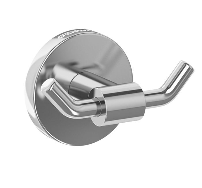 “Creta Series” double hanger. The product consists of a wall mount, a wall plate covering the wall mount and a double hanger. The hanger consists of a central cylinder and a V-shaped rod
