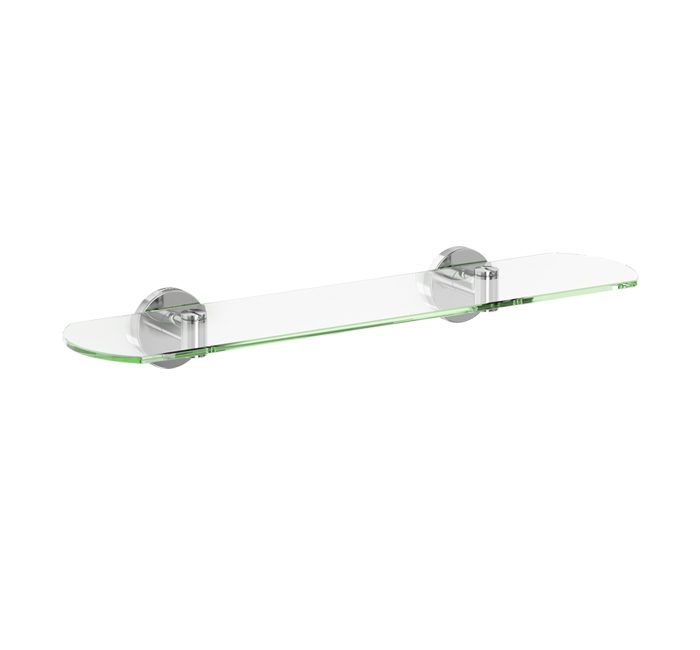 “Creta Series” tumbler holder. The product consists of two wall mounts, two wall plates covering the wall mounts and a glass shelf. The shelf, which is made of transparent pressed glass. The