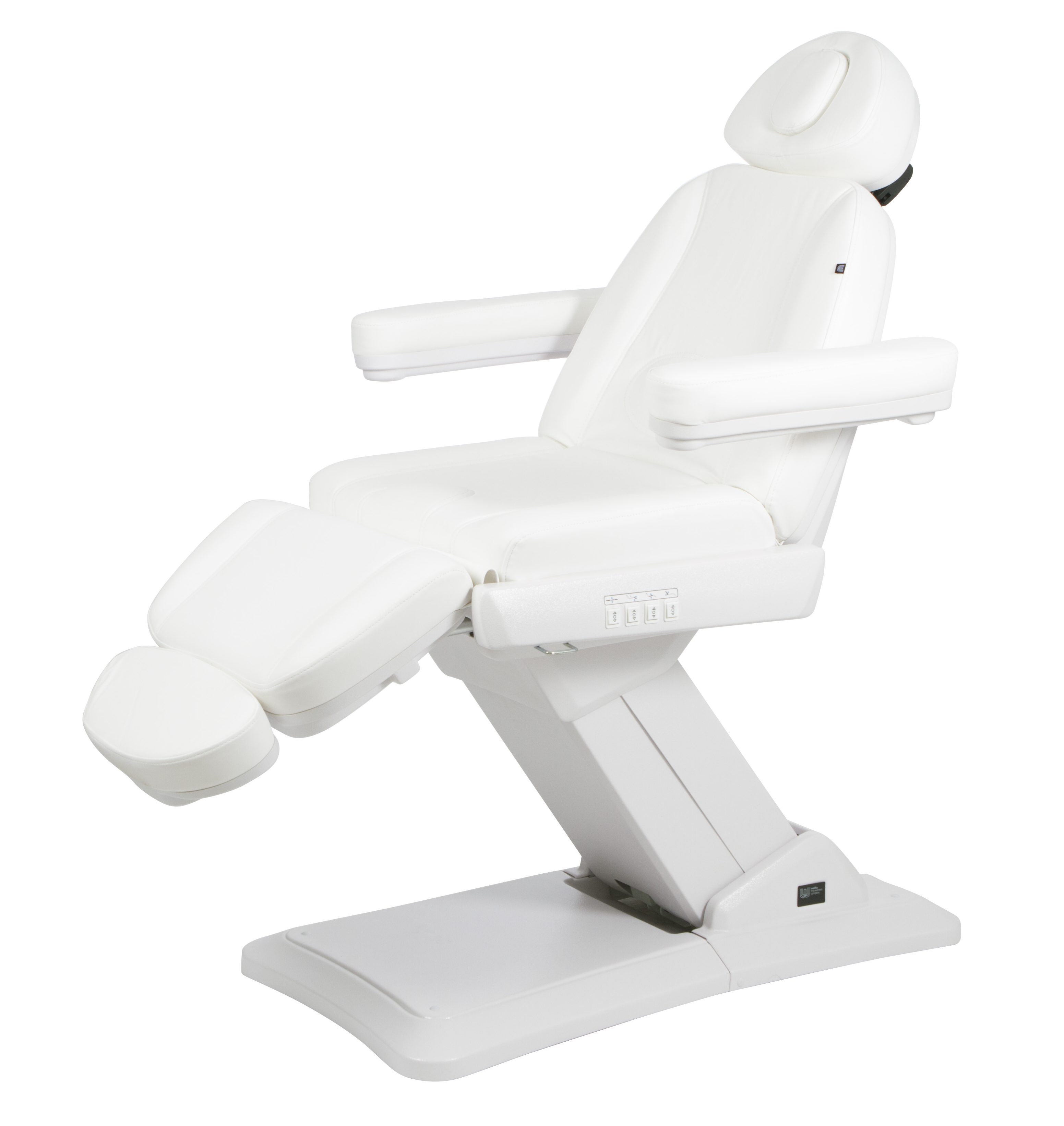 Scaun upmarket și confort ridicat, echipat cu 3 motoare care controlează înălțimea, spătarul și înclinarea scaunului. Suport pentru picioare reglabil prin ridicare cu gaz. Cotiere inclinate și tetieră reglabilă. De asemenea, disponibil în 4 motoare (2235D) pentru a controla mișcarea picioarelor. Panourile cu butoane încorporate în spătar, tetiere și scaun permit un control complet al tuturor funcțiilor din orice punct al scaunului. Această versiune include funcția RESET pentru a readuce scaunul în poziția zero. Tapițerie din PU albă de înaltă calitate, care ușurează curățarea.