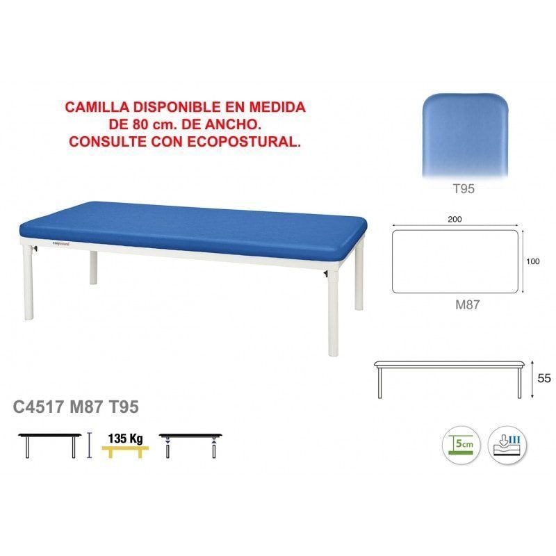 Masă de tratament staționară – 1 secțiune – 198×100 cm – Cadru acoperit alb
