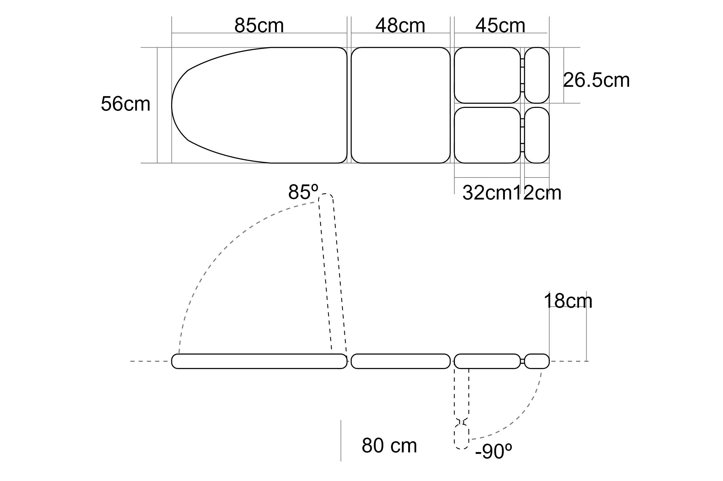 | Secțiunea picioarelor | Secțiuni individuale reglabile și extensibile |