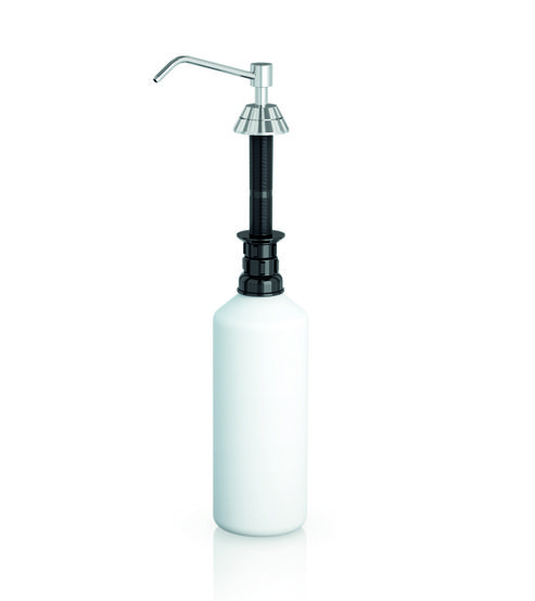 up to 1 litre of liquid soap. The container is filled from the top of the dispenser by unfastening the top piece of the push pump with the tool provided for this purpose. The push pump is operated manually by